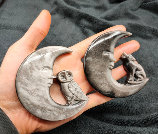 10X LARGE SILVER OBSIDIAN MOON CARVINGS