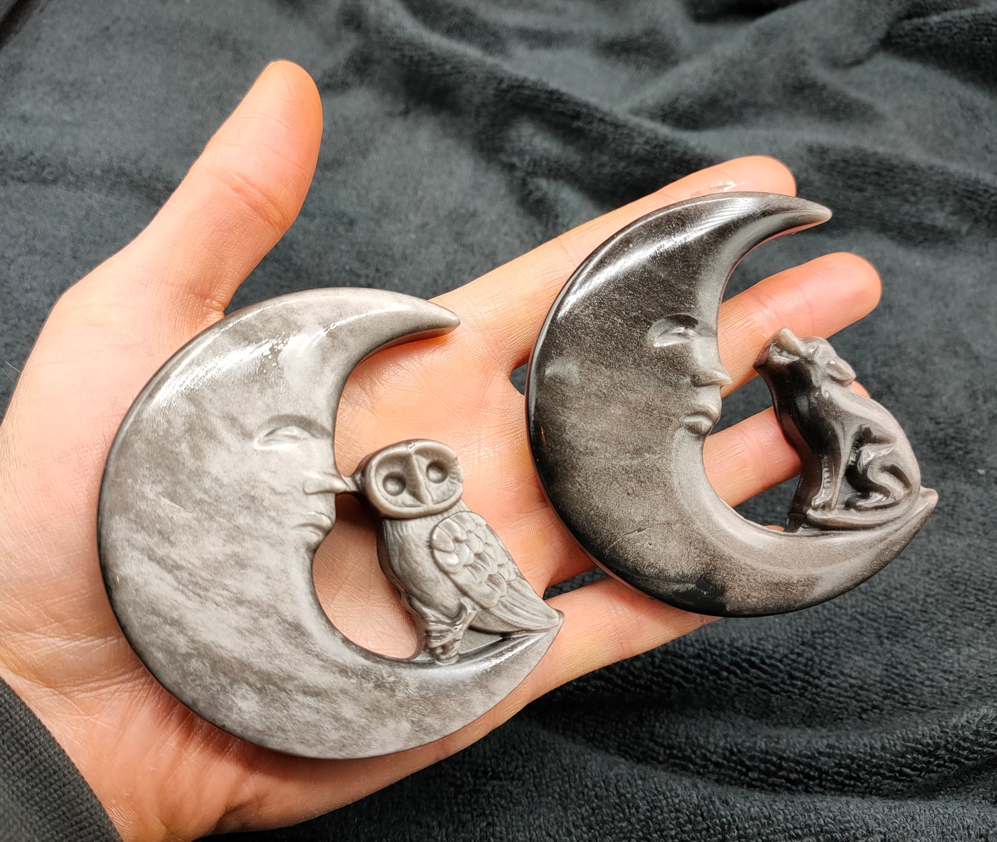 10X SILVER OBSIDIAN MOON CARVINGS
